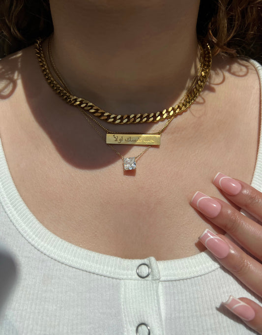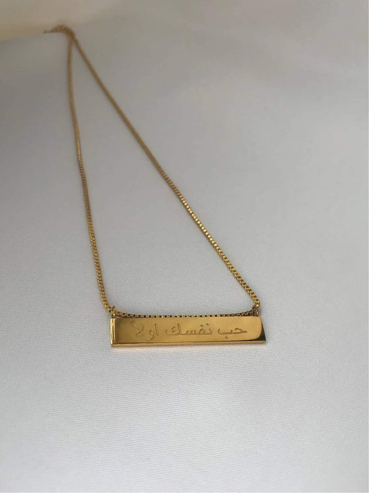 ‘Love Yourself First’ Arabic Bar Pendant Necklace