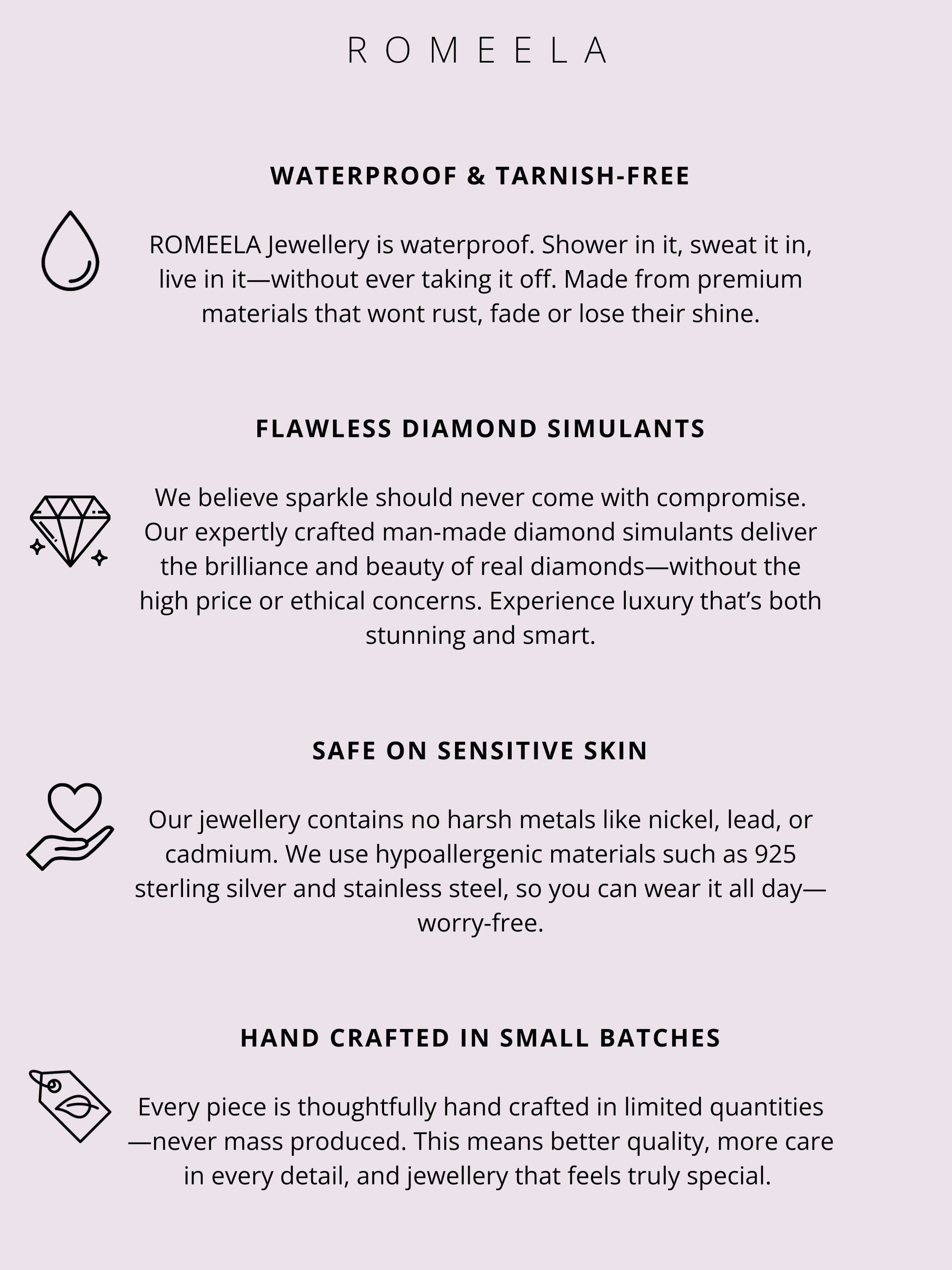 We're not just saying our jewellery is water-resistant for marketing purposes – we mean it! Our products have been tested and loved by hundreds of satisfied customers.
