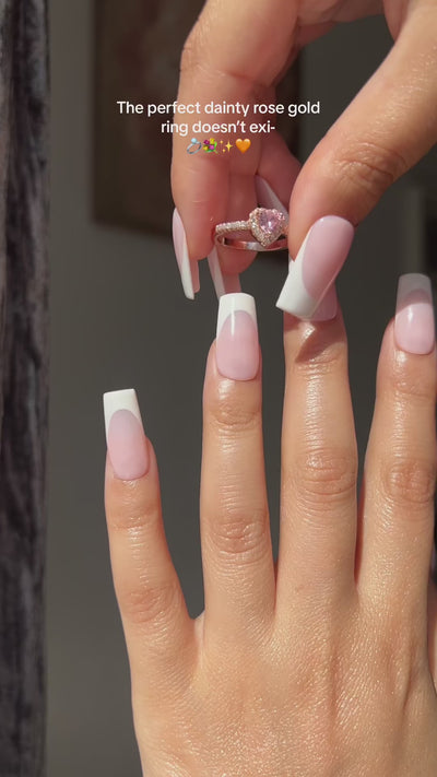A beautiful addition to any jewellery collection, the timeless 'Mini Elina Heart Sterling Silver Ring- Rose Gold' is the ultimate symbol of love. Featuring a pink central love heart shaped stone, intricately surrounded by beautifully micro-paved silver stones perfectly inlayed around and on either side, taking sparkle to a whole new level. Its petite size makes it perfect for everyday wear, effortlessly complimenting any look to match your style.