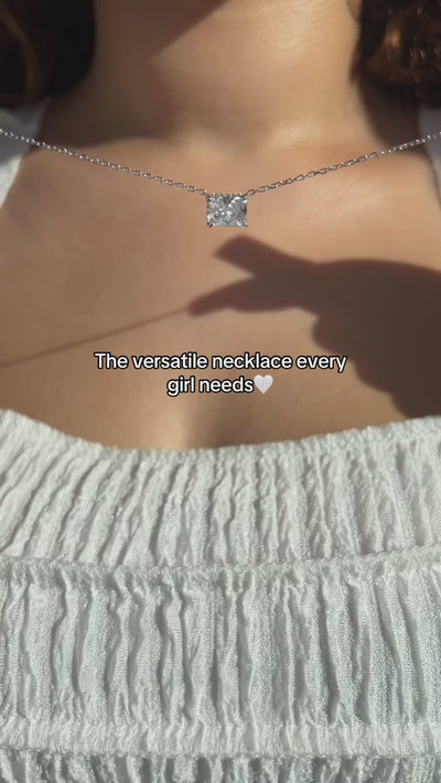Léna Radiant Cut East West Sterling Silver Pendant Necklace