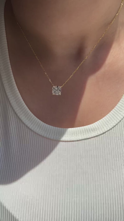 Lésa Radiant Cut Square Sterling Silver Pendant Necklace