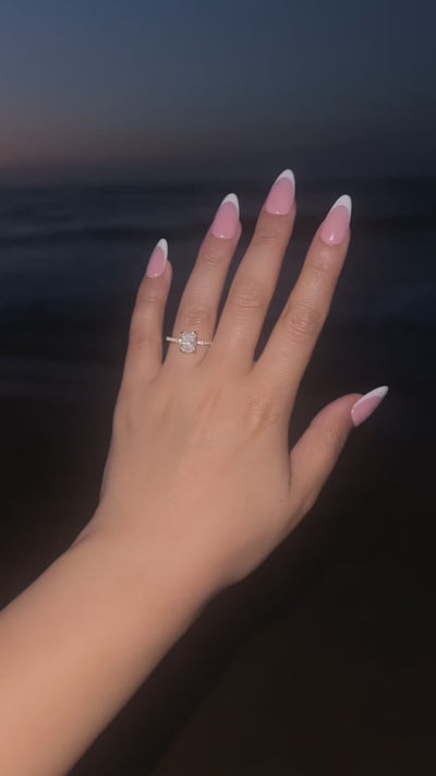 A mini version of our Cecilia ring, the mini Cecilia ring is a dainty, simple ring, but not short of sparkle! Featuring a radiant cut central stone surrounded by micro-paved stones, and a hidden pavé halo beautifully reflecting light from every angle. With its timeless design, it's guaranteed to become a staple in your jewellery collection.